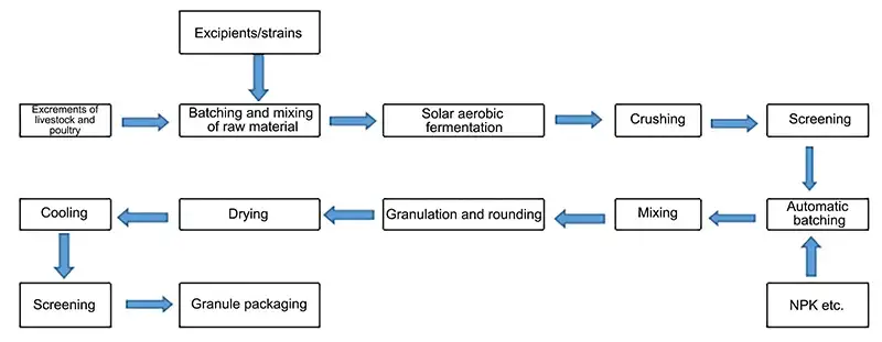 صمم هذا الخط الإنتاجي لإنتاج أسمدة عضوية حيوية عالية القيمة، وهو يعتمد على عمليات تصنيع الأسمدة العضوية التقليدية مع تطبيق رقابة أكثر صرامة على النشاط البيولوجي وأداء المنتج. ويكمن الاختلاف الجوهري في تركيز العملية، والمؤشرات الفنية، ومتطلبات المادة العضوية، مما يضمن أن المنتج النهائي يوفر العناصر الغذائية والفوائد البيولوجية للتربة.