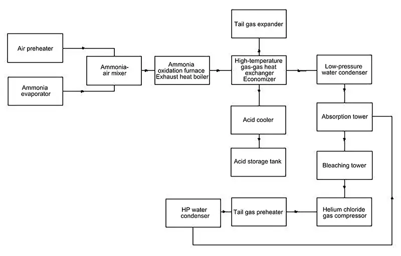 نظام متكامل لإنتاج حمض النيتريك باستخدام عملية أكسدة الأمونيا، وهو مناسب لصناعة الأسمدة.